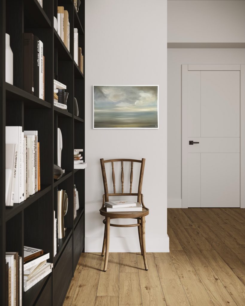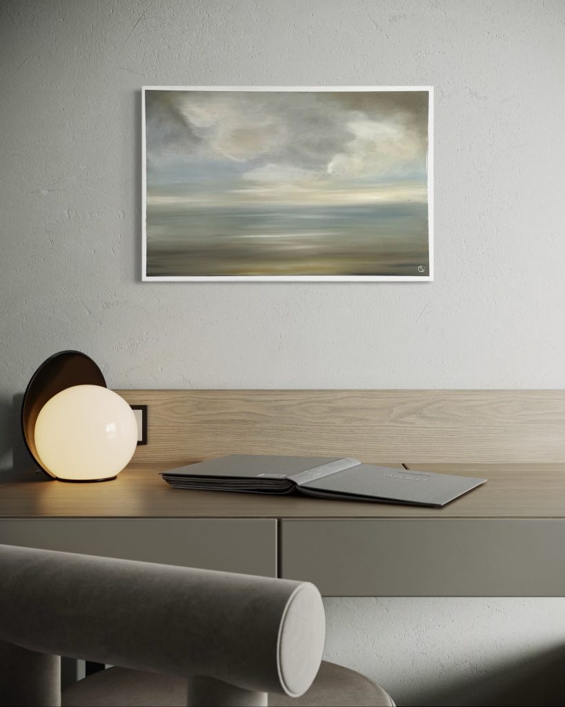 Um einen Eindruck zu erhalten, wie genau sich das Bild in deiner Umgebung anpasst, biete ich dir meinen Mockup-Service an. Alles was es dazu braucht, ist ein Foto der betreffenden Wand inklusive der Maßangabe. Diese virtuelle Aufhängung ermöglicht es dir, die Farbwirkung und das Größenverhältnis erlebbar zu machen.